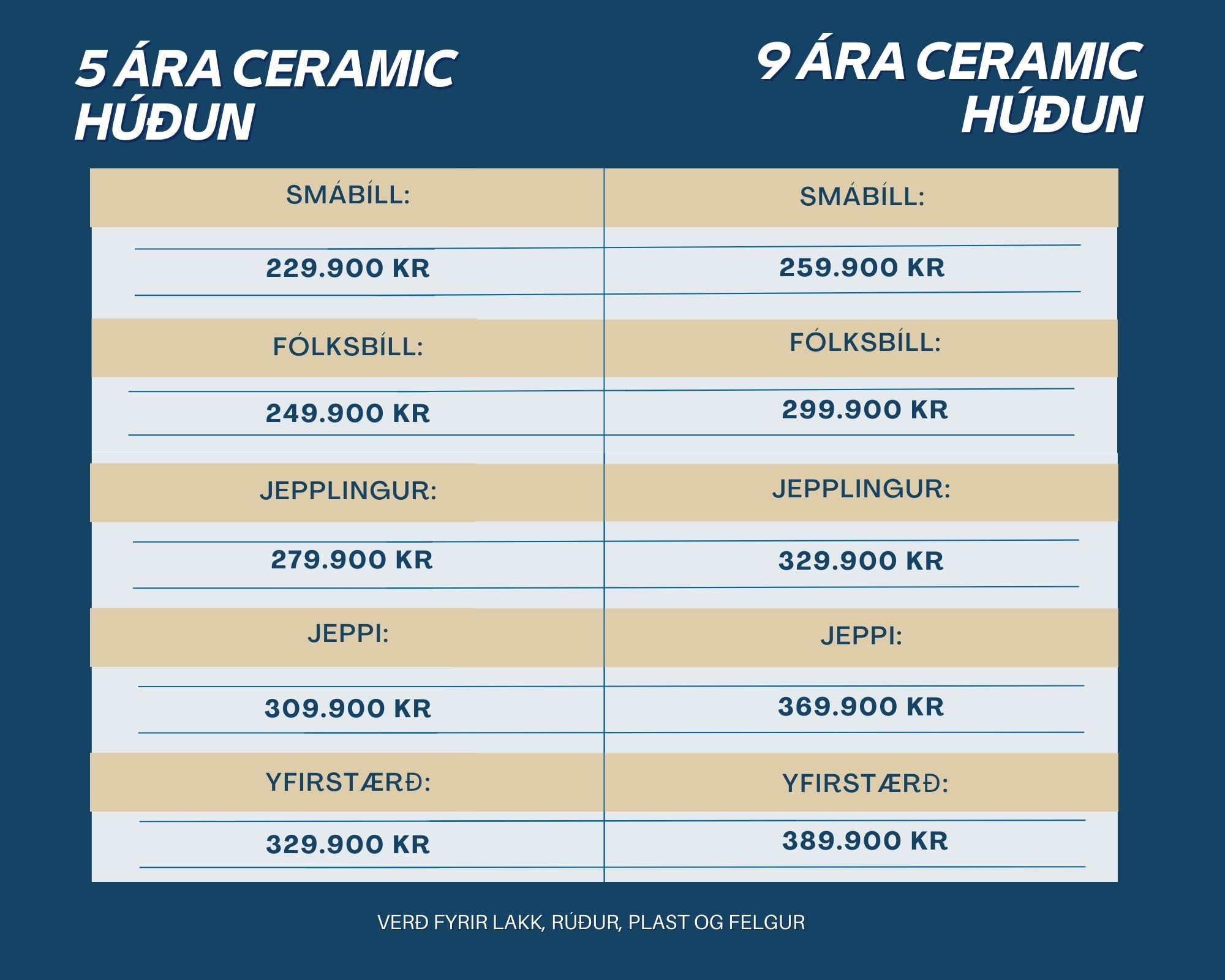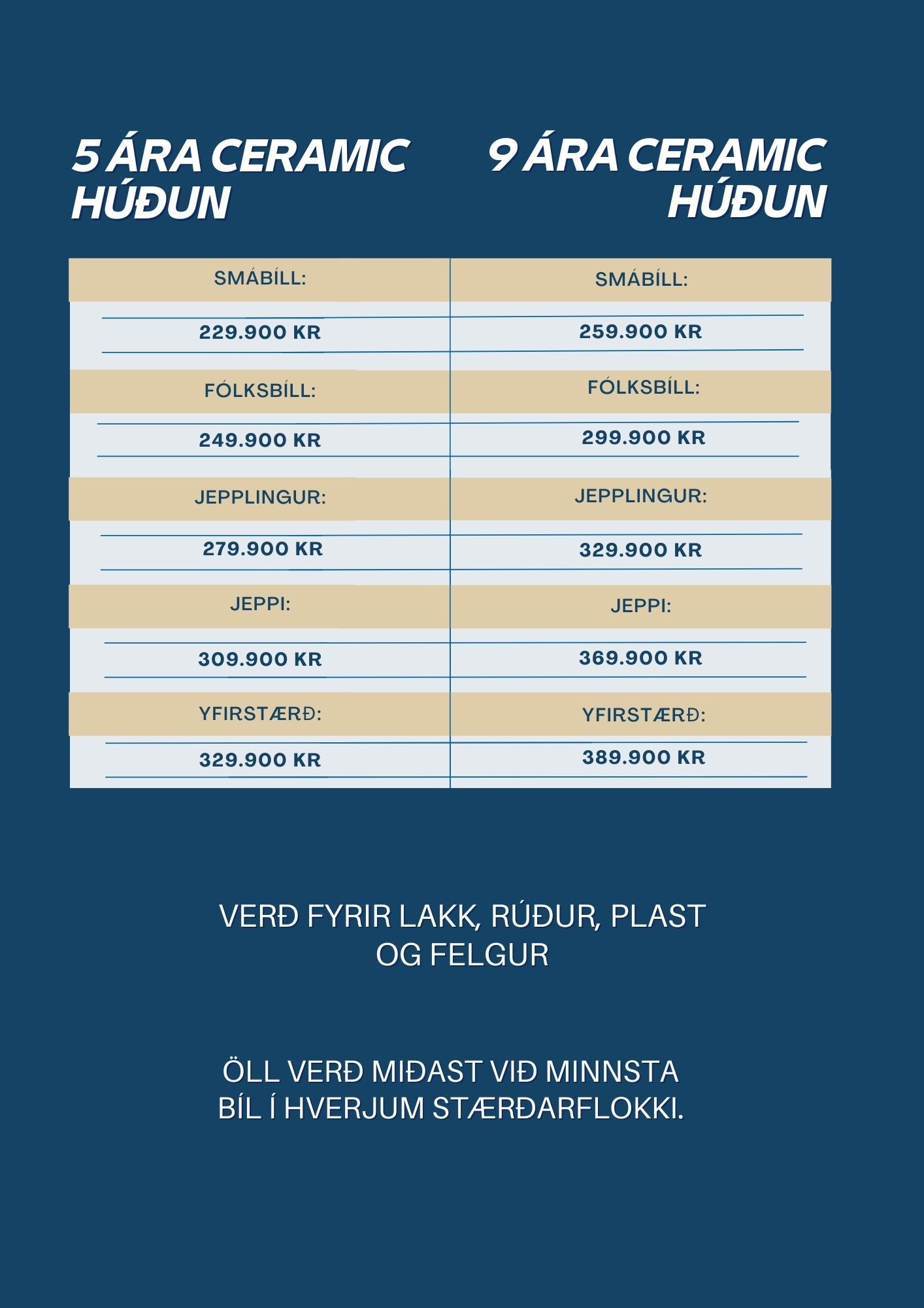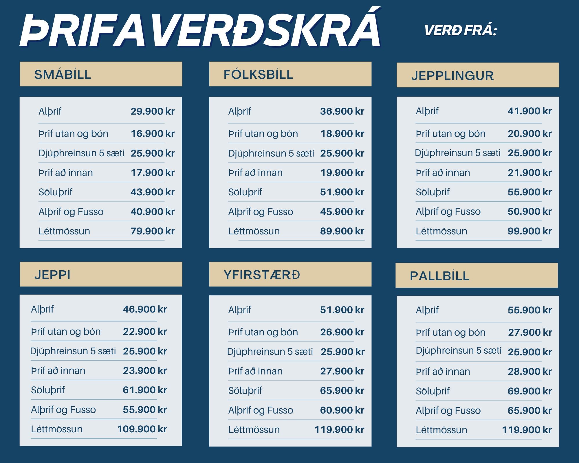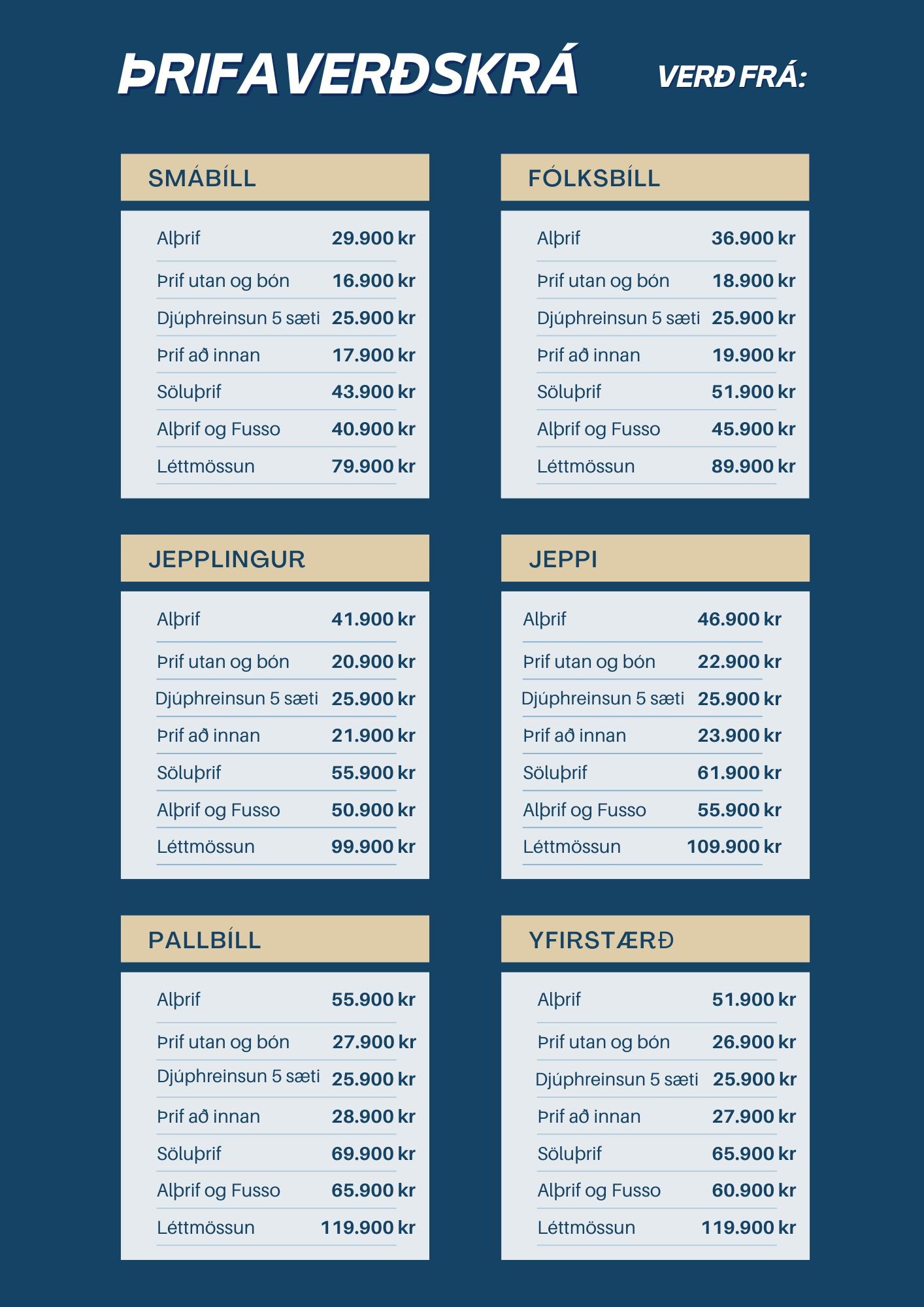 Ath: Öll verð miðast við minnsta bíl í hverjum stærðarflokki.